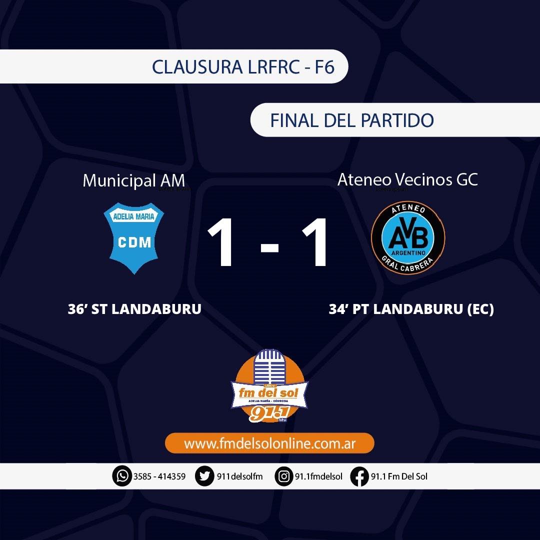 Municipal empató 1 a 1 de local frente a Ateneo Vecinos de General Cabrera y Atlético perdió el viernes por la noche visitando a Everton por 2 a 0.